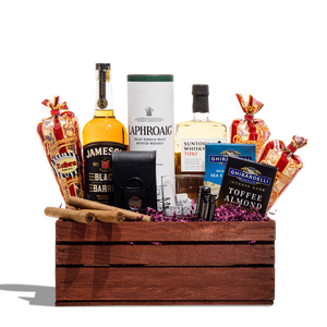 Trying to win someone over with your love of booze? Looking to close the deal with that hard-to-impress client? Searching for the best gifts for Scotch lovers? Our 'A World of Whiskey BroBasket' is packed full of liquor, cigars, and all sorts of accessories to win over that business partner, new associate, or potential client who loves to toss back a cocktail. Or two. Or Ten. We could have kept it simple with some straight Kentucky bourbon. We could have opted for a gallon of Jack Daniels and a couple of cans of Coke. But we didnātāwe assembled this BroBasket as the ultimate whiskey trip around the worldā one that goes from Japan to Ireland to Scotlandā¦the perfect blend of unexpected perfection and worldwide indulgence.