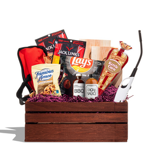 We’re the kind of guys that never cook in the kitchen, but the second the sun comes out, we’re quick to light the grill. And we know we’re not alone. If you’re looking for BBQ gift basket ideas for the grillmaster in your life, the Barbecue Party Gift Basket is loaded with tools, snacks, sauces, and everything he needs to throw one hell of a barbecue in the backyard. Packed into a reusable wooden crate, this BroBasket includes two bottles of Earl’s Gone Wild barbecue sauce, a Scripto BBQ lighter so he doesn’t burn himself trying to light the grill with matches, and cedar smoker planks that add authentic smoky flavor to any piece of meat or fish. We’ve even included some essential BBQ utensils, such as a spatula with a nifty bottle opener, a barbecue sauce brush, tongs, and a BBQ fork.